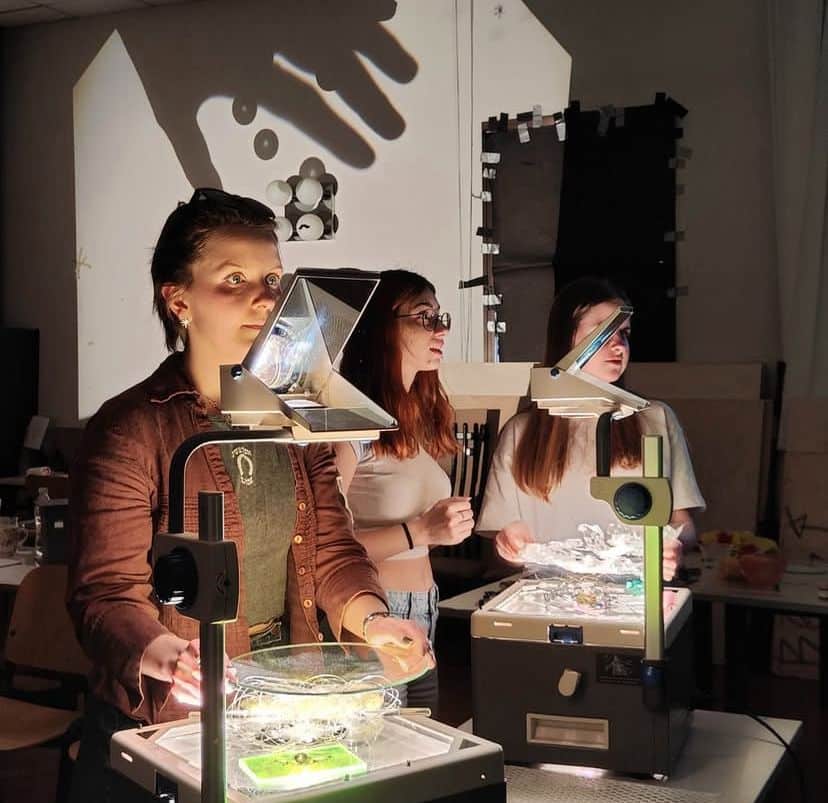 Il laboratorio è dedicato a esplorare il mondo della luce analogica e delle tecniche di proiezione ed esplorare le possibilità creative offerte dai proiettori overhead. L’attenzione sarà focalizzata sulla luce liquida e sulla mappatura architettonica analogica, due approcci sperimentali che consentono di sperimentare direttamente e tattilmente la luce, la materia, il movimento e lo spazio.